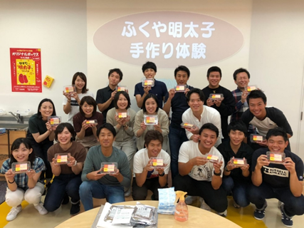 その他にはふくやの明太子作りを体験し、お好みでゴマや胡椒で味付けをし、日本で唯一のオリジナル明太子を作りました。