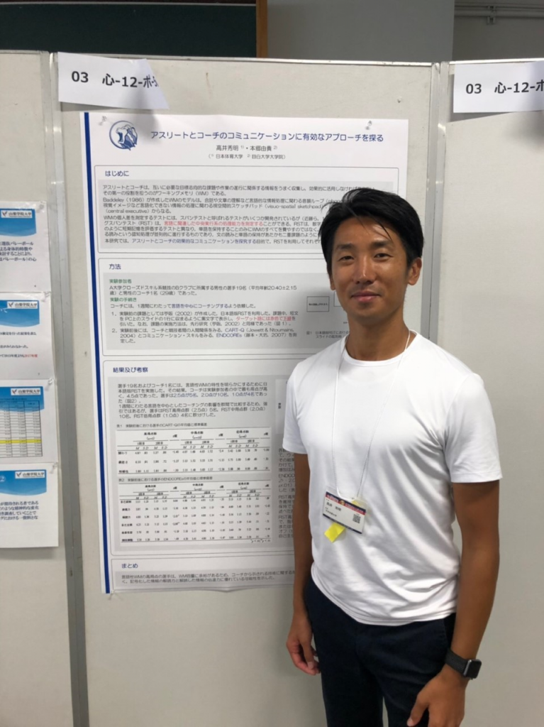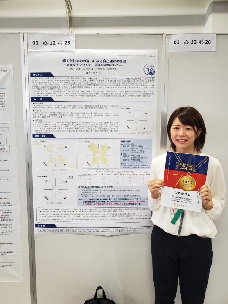 シンポジウムでは、「メンタルトレーニング指導の現場-指導者や科学スタッフとの連携-」というテーマで、スポーツメンタルトレーニング指導士の役割、パラアスリートにおける心理サポート、指導者の立場からみえる心理サポートの3題について聴講しました。特に、指導者立場からみえる心理サポートでは、心理サポートスタッフとしての新たな課題がみえ、今後の心理サポートに役立てていきたいと感じました。