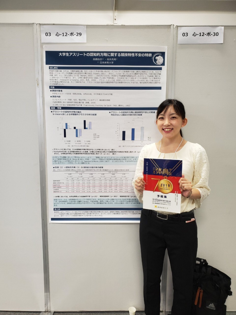 3日間の学会大会を通して、今後の研究活動のヒントを得ることができ、とても有意義な時間となりました。また、日本体育学会は他領域の発表もみることができ、そこから得ることも多くあったため、その点を今後の研究活動に活かしていきたいです。