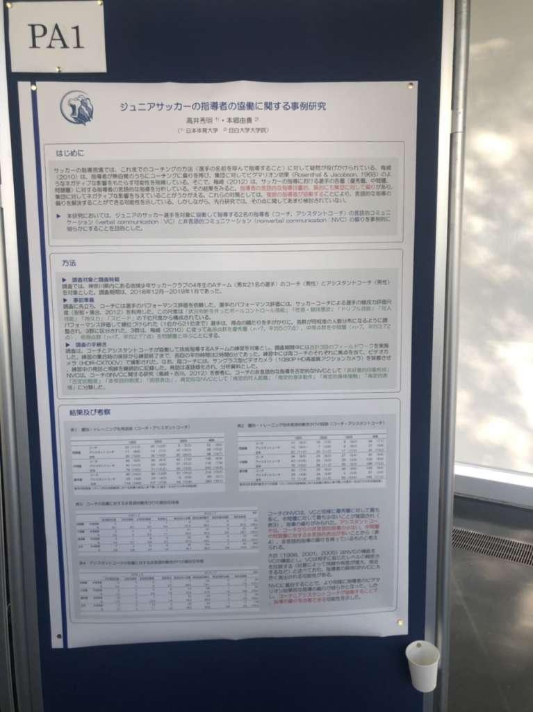 学会企画シンポジウムは、「スポーツ心理学と発達的な観点からみた指導」というテーマで行われました。また、ラウンドテーブルディスカッションでは、高井先生が話題提供者の1人として参加し、「2020年東京オリンピック・パラリンピックに向けての心理サポートとその後(その4)」というテーマで行われました。