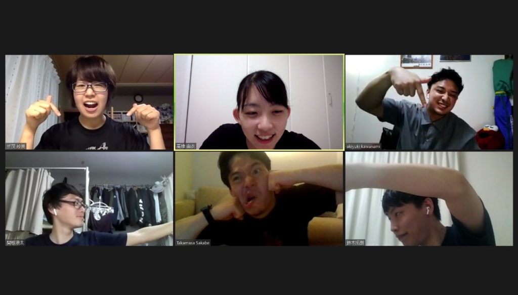 今回は推理ゲームを行う予定でしたが、結局、本学スポーツ心理学研究室は、他大学出身の方も所属しているため、日本体育大学をはじめとする他大学のあるある話で盛り上がりました。また、Zoomのブレイクアウトルーム機能を利用して2グループに分け、より深い話をしたり、画面上でポーズを完成させたり、オンラインでの新たな楽しみ方が増えました。