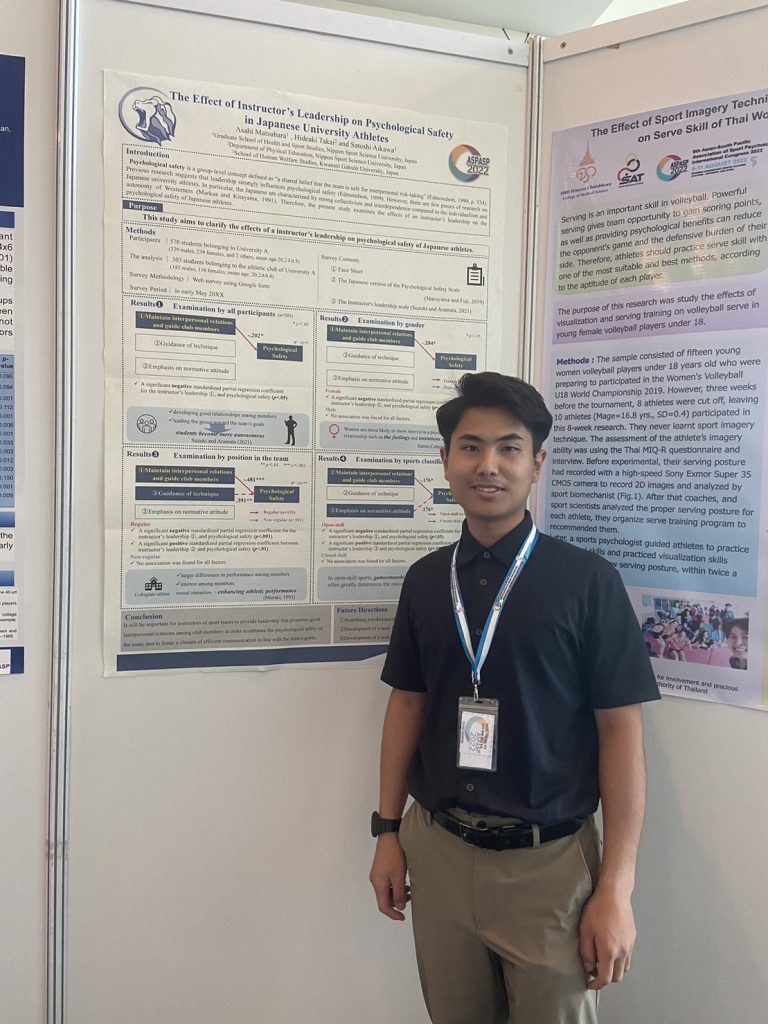 本学大学院博士前期課程2年の松原旭飛が2022 9th Asian South Pacific Association of Sport Psychology(ASPASP)International Congressにおいて、Certificate of Best Poster Presentation Award を受賞いたしました。
