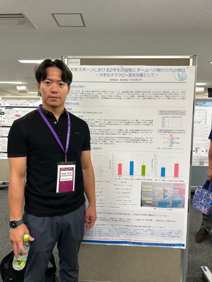 初日はそれぞれの研究の関連領域のシンポジウムや口頭発表などに参加しました。私は、大学院に入学し、人生で初めての学会参加となりました。体育・スポーツ科学の領域の研究者が多く集まり、そこでは様々な研究成果が発表されており、皆さんが体育・スポーツ科学の普及・発展に貢献しようとされている姿がとても印象に残りました。